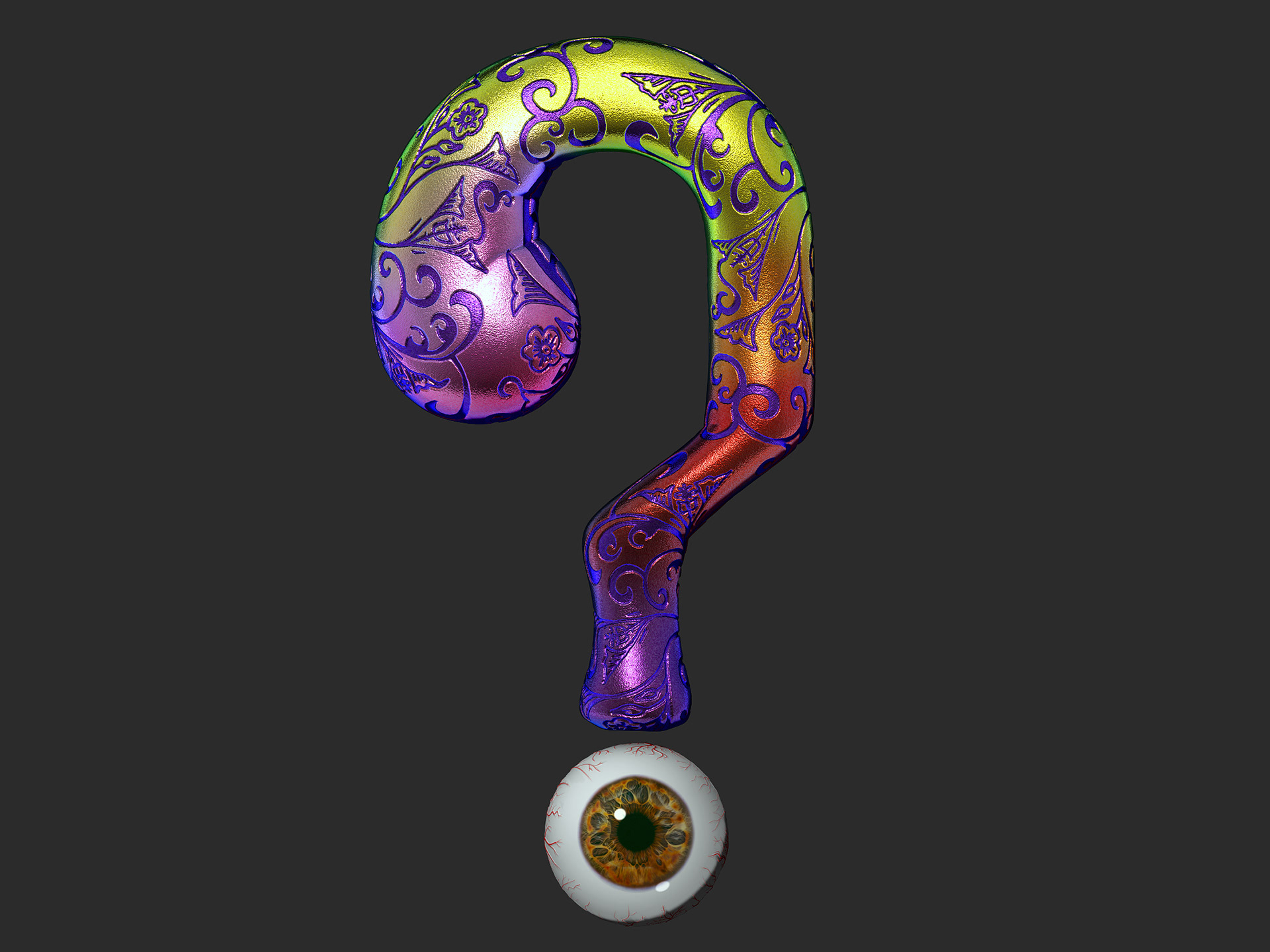 100% sculpted, painted and rendered within ZBrush. Layers comped in Photoshop. Animated in After Effects