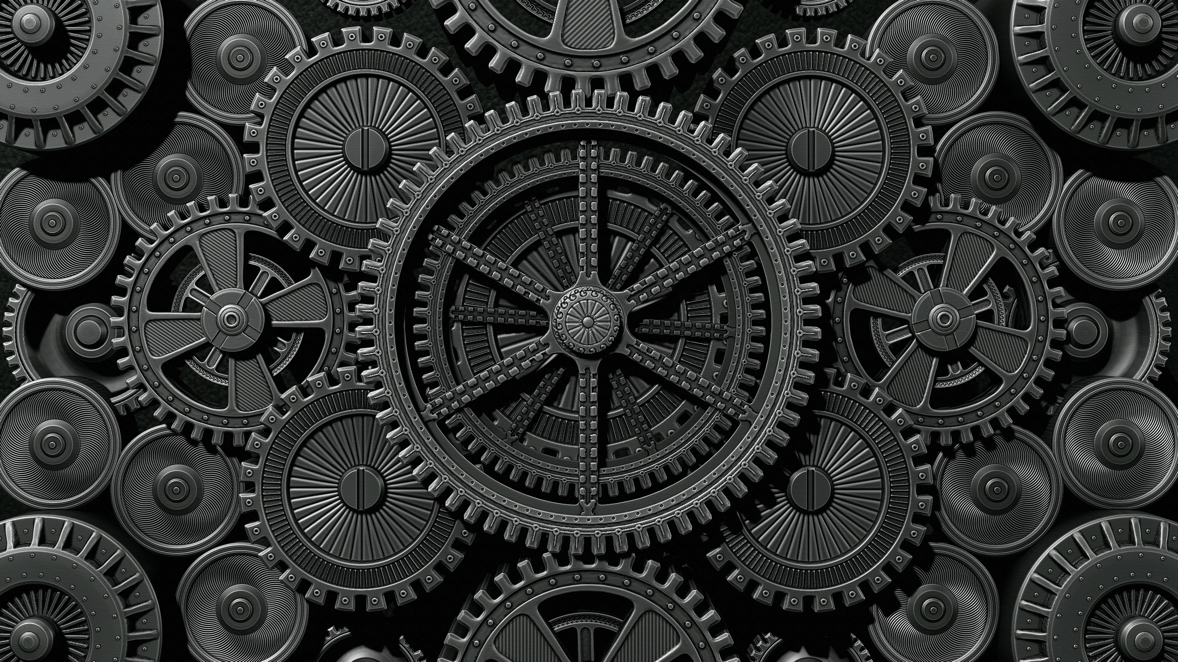 added gears fading into the dark. Thinking Modern Times, Metropolis.
